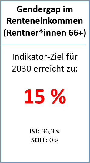 2030Watch erweiterte Indikatorenliste umfasst weitere fünf Indikatoren, mit einem modifizierten Zielwert für einen offiziellen Indikator sowie vier neuen Indikatoren, um die Bandbreite von Geschlechtergerechtigkeit mit Indikatoren zur Haushaltsarbeit, Gewalt und Partizipation im politischen Leben besser abzubilden. Aus diesem ergänzenden Indikatorenset berechnet sich eine Zielerreichung von 90,2 Prozent.